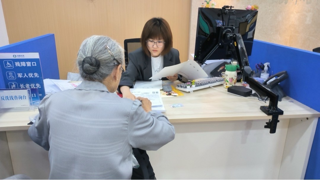 工作人員協(xié)助跨境老齡客戶辦理業(yè)務(wù)