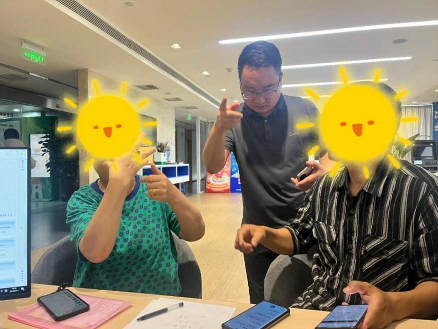 工作人員為聾啞老齡客戶提供個性化服務(wù)